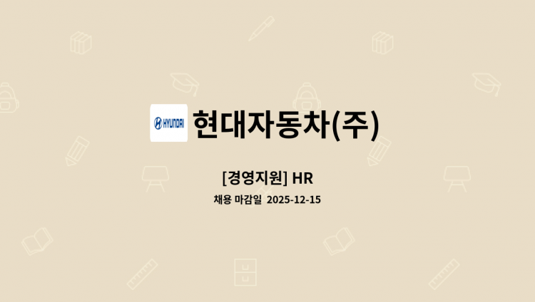 자동차는 단순한 이동 수단이 아닙니다. 누군가에게 휴식이 되고 생계를 영위하는 수단이며 가족, 친구, 연인과의 소중한 시간을 쌓는 공간입니다. 현대자동차는 고객의 평범한 일상을 공유하고, 가능성을 현실로 이루는 과정에 함께합니다. 손에 겨우 잡힐만한 작은 부품을 만드는 일에서부터 어린이들에게 자동차 만화를 보여주는 일까지 현대자동차에는 정말 많은 일이 있고, 그보다 더 많은 수만 명의 사람들이 있습니다. 그리고 하나의 제품을 위해 모두 한마음으로 연결되어 일합니다. 우리의 일이 미칠 영향을 무겁게 인식하는 책임감, 우리의 자동차가 고객의 삶에 파트너로서 함께하는 자부심. 미래의 구성원들도 이 힘을 같이 느낄 수 있도록 우리는 끊임없이 노력할 것입니다.