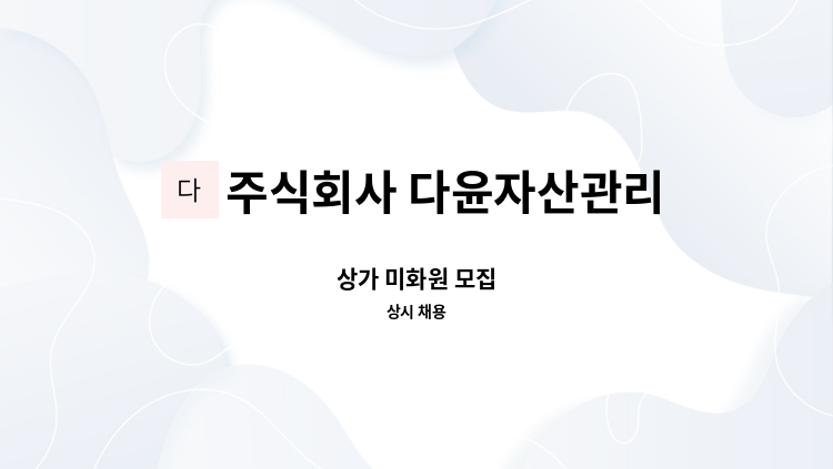 운서동 솔리움센텀스카이 미화원 구인 - 주5일 / 08:00~15:00 (휴게시간 : 11:30~13:00) - 급여 : 월 1,600,000원
