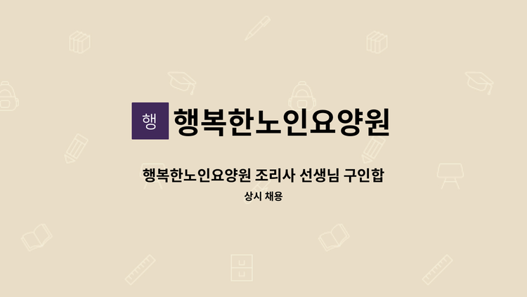 사회복지법인 행복한세상복지재단의 산하기관 행복한노인요양원에서 새로운 가족을 모십니다.