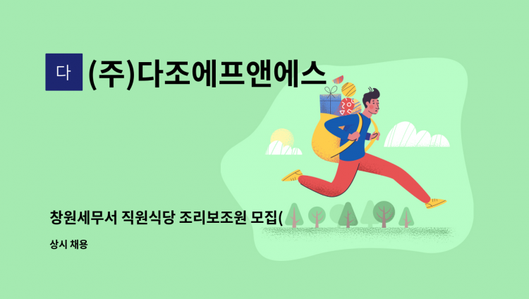 (주)다조에프앤에스에서 동래세무서에서 근무하실 경력직 영양사를 모집합니다. 현재 동래세무서 새청사 건축중으로 오픈예정일 10월 17일입니다.