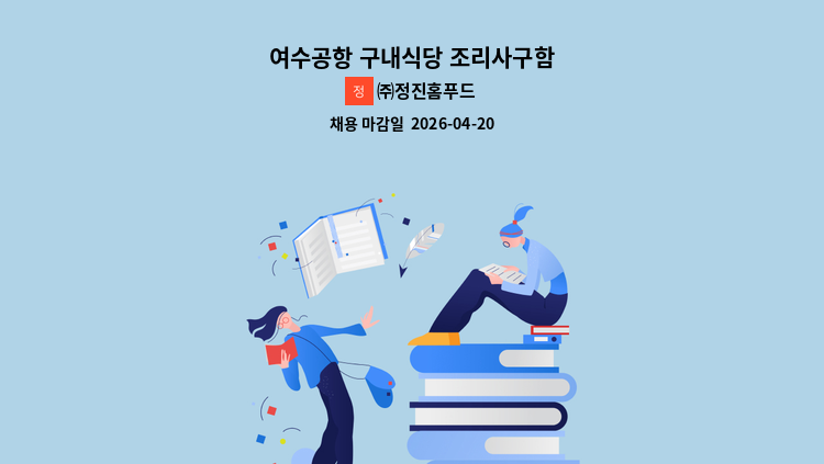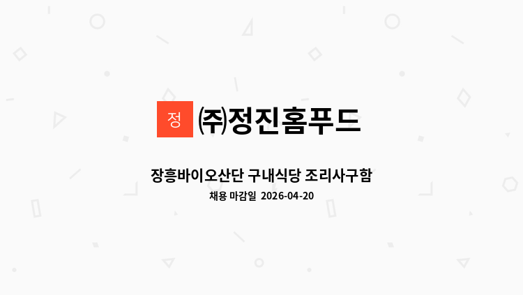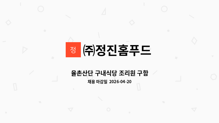 전남 개발공사 구내식당 보조조리원 모집 근무요일 : 월~ 금요일 근무시간 : 9시~14시30분 급여 : 130만원 많은 지원 부탁드립니다.