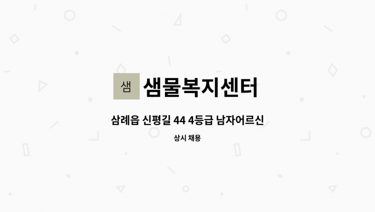 *4등급 여자어르신 88세 *09:00-12:00 3시간 *근무지 - 삼천동 광진목화아파트 *가사 및 일상생활 도움 및 정서지원 *상냥하시고 인근거주자 환영