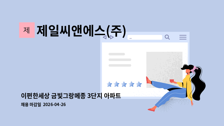 [포레시안 아파트] 내부청소원 모집 - 평일 근무 : 09:00 - 15:00(휴게시간/12:00~13:00) - 토요일 : 09:00 - 12:00