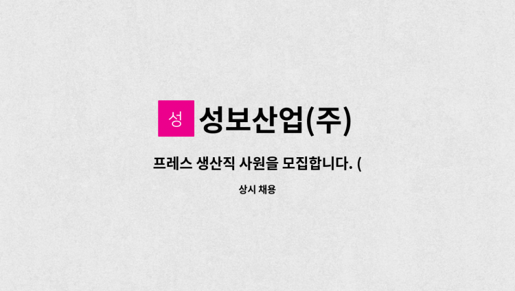 제목과 같이 프레스(60톤~250톤) 공정과 로봇용접 공정의 정규직 사원을 모집합니다. 경력이 없을시도 입사지원 가능합니다.