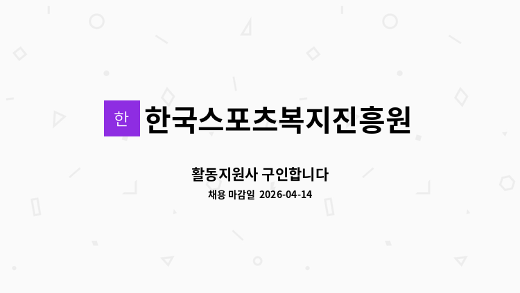 장애인활동지원사를 구인합니다. 1. 담당업무 - 30대후반 남성 지체장애인(와상) 신체활동지원, 가사활동지원(세탁, 청소 등) - 휠체어 이동도움 필요하심. 2. 근무시간 - 월, 수, 목, 토: 오전 7시30분~16시30분(8시간 근무 / 1시간 휴게) - 화, 금: 오전 7시30분~13시30분(5시간30분 근무 / 30분 휴게) *토요일 근무는 협의에 따라 탄력근무 가능함. 3. 제출서류 - 이력서, 교육이수증 사본 등