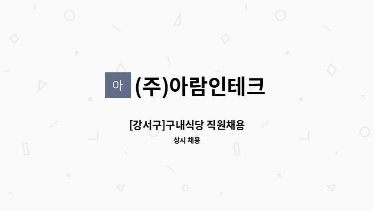 - 근무시간 : 주방조리원 월~금 : 09:00 - 18:00 / 주방보조 09:00~15:00