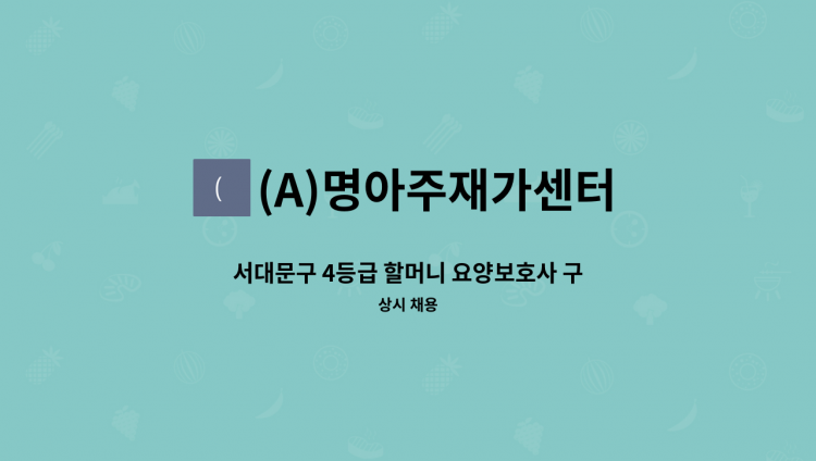 - 4등급 80대 여자 어르신 - 거동가능, 인지정상 - 식사/청소/세탁 등의 지원 필요 - 주 5일 근무 - 시급 12,000원