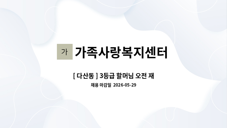 - 86세 3등급 할머님 케어 - 워커 짚고 다니심. 주1회 목욕, 청소 등 가사지원 희망 - 주6일, 13:30~16:30 - 시급 11,600 원