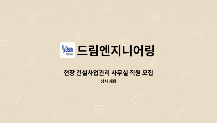 ㆍ연봉은 퇴직금 포함 기준 ㆍ점심, 저녁 등 식사 제공 ㆍ4대보험 / 주 5일 근무 / 연차 / 워크샵 / MT ㆍ각종 경조금 지원 / 사우회 경조금 별도 지급 / 자격증 수당 지급 ㆍ장기 근속 포상 제도 / 명절 선물 지급 / 자유로운 연차 사용 / 출장비 지급 ㆍ드림엔지니어링 사옥 신축 중(지하 4층, 지상 15층 준공예정 : 2024년 9월)