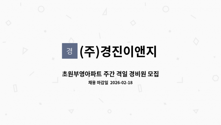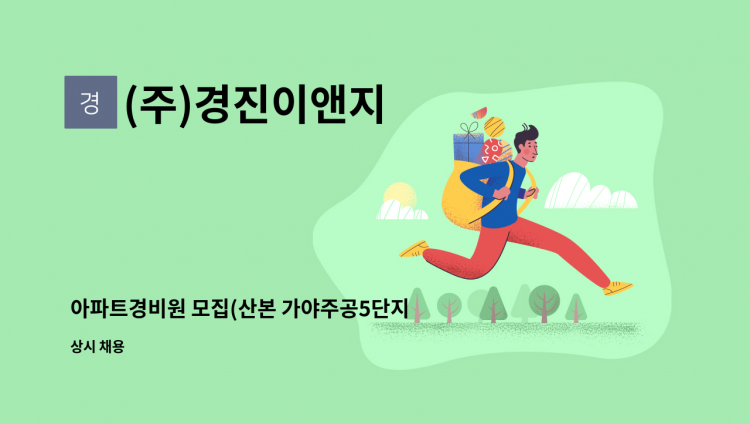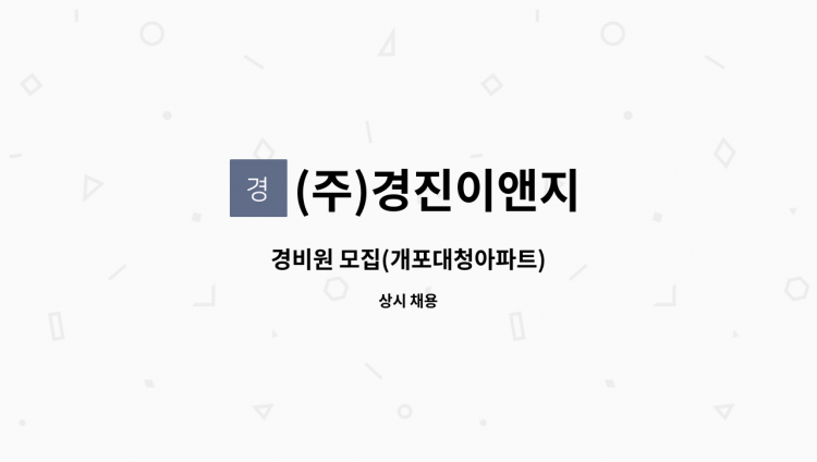 아파트 경비원 - 장애인 2명 우선 채용 - 신임경비교육이수증(필수) - 근무시간 06시- 익일06시 격일 맞교대 근무(휴게시간 10시간) - 월급 202만원 ** 2022년 11월 25일 17:00 지원 접수 마감. (11/28 09시부터 면접 예정) * 지원방법: 전화 010-****-**** (*개인정보가 자동 블라인드 됩니다.) 로 전화 또는 문자 메시지로 지원. * 워크넷 연계를 위해서 주 5일 40시간 근무로 표기함.