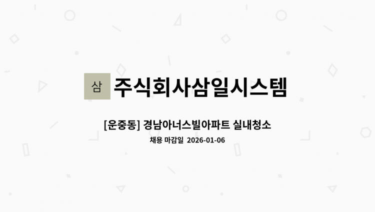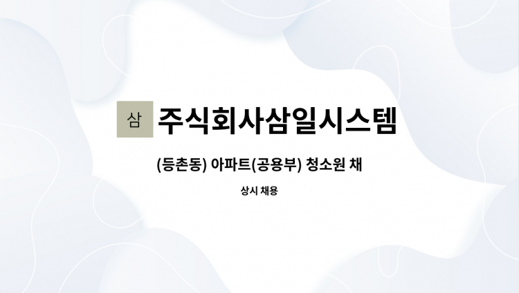 다산동 유승한내들센트럴아파트 외곽청소원 월-금 11:00-18:00 (휴게1시간) 토 (격주근무) 09:00-12:00 월1,552,620원