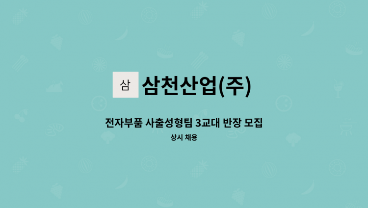 - 일정 기간 수습 후 정규직 전환 가능 - 경력자 면접 시 급여 협의 - 급여 : 회사 내규에 따름