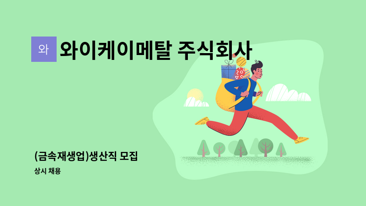 주) 와이케이메탈 경영지원파트 채용을 진행합니다. [담당 업무] 경영지원업무 및 대표이사 비서업무 [근무 조건] (월~금)08:00~18:00 (토)08:00~16:00, 월 1회 당직근무 [자격 요건] 경력사항 : 경력 (2년이상 우대) [필수조건] 1. 중국어 가능자 2. 운전가능자