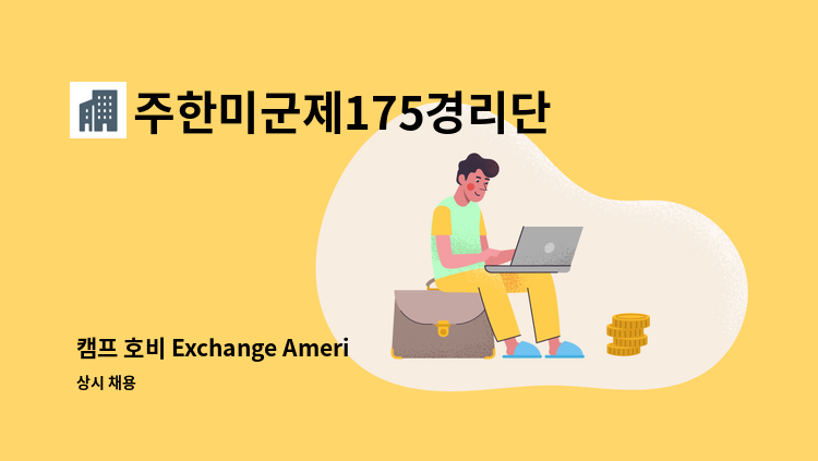 * 주한미군 동두천 케이시 미군부대 내 Express매장 기간제 파트타이머 모집 - 주유판매, 레지스터, 상품 진열, 분류, 창고 물류관리, 창고 및 매장 정리 등 (550점 이상의 유효한 토익성적표 원본 필수 첨부) - 주 최소 20시간 - 최대 32시간 근무 (교대근무, 스케줄 협의) - 시급 13,392~19,019원 (기본급 기준 상여금 200% 적용시/상여 적용시까지는 기본급 약 10,266원) ▶ 지원 희망자는 워크넷에 구직신청(점수 550점이상 토익 사본 필수 제출) 후, 워크넷 입사지원하시기 바랍니다. ▶COVID-19 예방접종 증명서를 구비서류와 함께 제출해주세요.