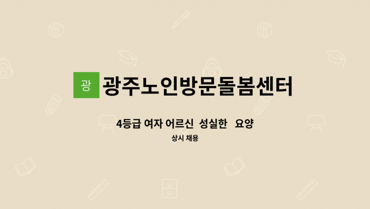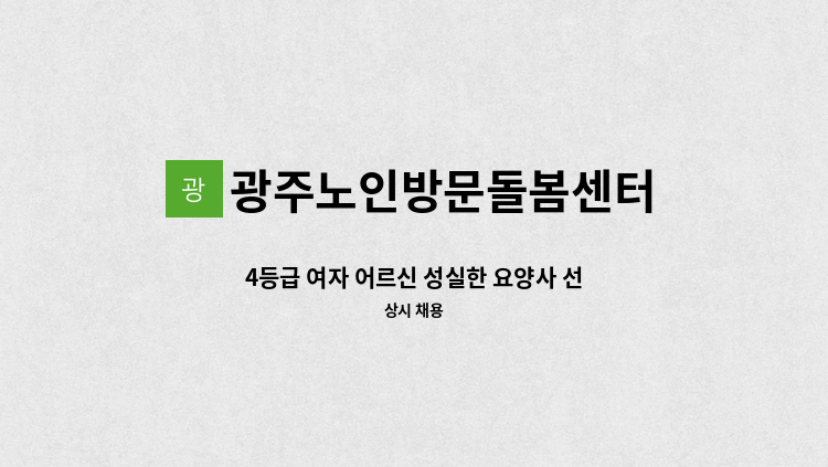 * 1등급 여자 어르신 케어 - 근무지: 광주시 오포읍 신현리 현대 모닝사이드2차 아파트 - 근무시간: 13:00~17:00 - 시급: 12,000원 - 일상생활지원 및 식사지원 가사지원 - 말벗 정서지원