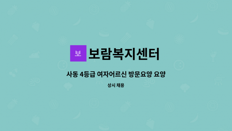 (차량목욕 이용 하므로 별도로 목욕도움 없음.)[근무시간 및 형태]