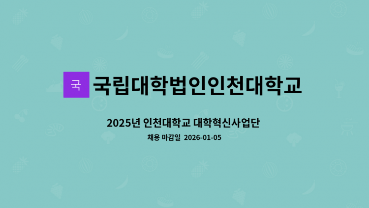 • 대학 내․외부 청소 및 기타 미화 관련 업무 등 ※ 붙임 채용공고 참조