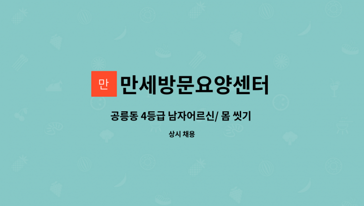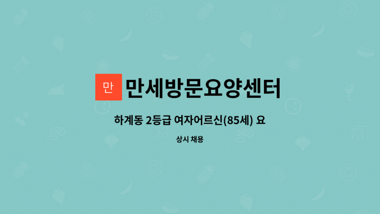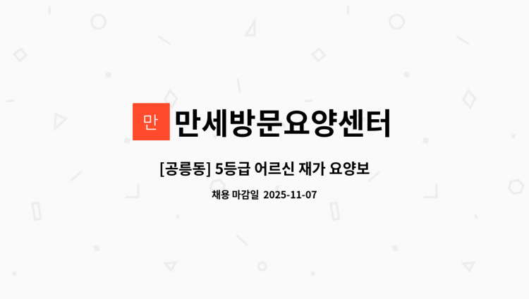 -3등급 여자어르신 -공릉동 도깨비시장 중간위치 빌라 -15:30~20:30 (주6일, 2시간(18:30~20:30)은 사비) -시급 11,600원 -가사활동지원(조리,청소,빨래) -저녁식사준비 및 차려드리기 -부축도움, 실내운동(유튜브활용)