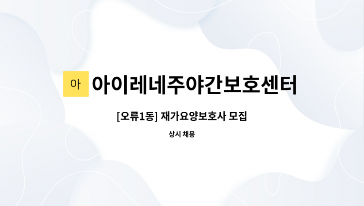 채용시 바로 출근예정이니 지원시 참고바랍니다. *관악고용센터에서 채용대행합니다. 지원요건 확인하시고 지원바랍니다.
