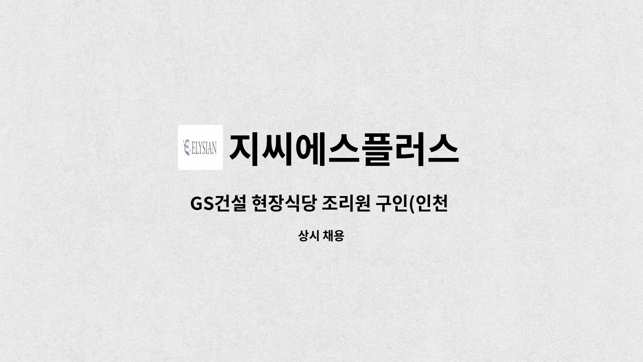 GS건설 현장(인천 서구 원당동) 구내식당 조리원 구인 - 숙소생활 가능자 및 인근 출퇴근 가능자 - 건설현장 및 단체급식 구내식당 경험자 우대 - 시간 및 협의 가능 실제 근무 주소: 인천 서구 원당동 산80-1( 인천 서구 원당동 529-11)