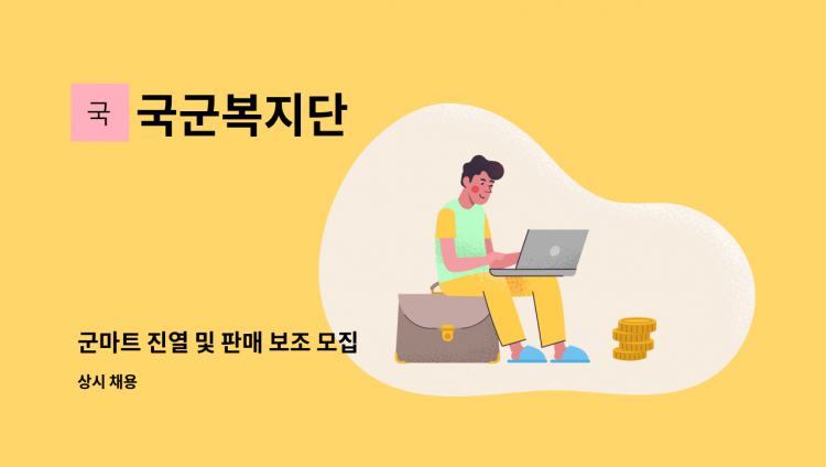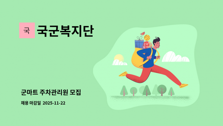 [단체급식 조리사 모집] 직무: 국군복지단 단체급식 조리 업무 - 식단표에 따른 조리 및 급식지원 - 자격증 무관 / 경력 무관 근무시간: 05:30~10:00 + 16:30~21:00 / 주5일제 / 주말 포함 스케쥴 근무 연봉: 2,300만원(시간외 수당 미포함) / 복지 포인트 별도 지급 / 성과상여금 지급 / 명절휴가비 지급