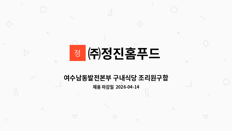 광양 보라로지스 구내식당에서 조리사 구인합니다. 근무요일 : 월~금(공휴일 및 주말 휴무) 근무시간 : 09~14시 차량소지자, 조리경력자 우대합니다. 급여 145만원입니다.
