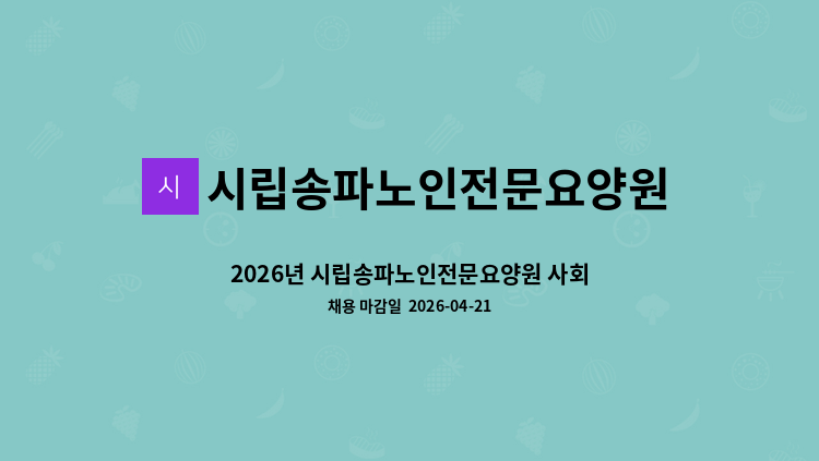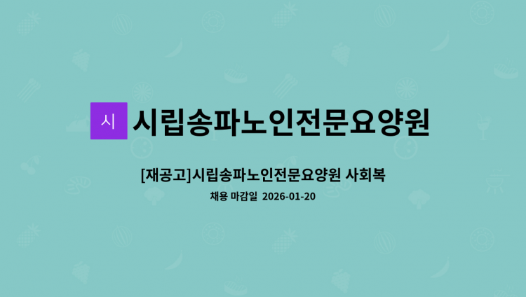 1. 채용개요 - 모집직종: 요양보호사 - 모집인원: 5명 - 채용형태: 계약직 1년 (평가후 재고용 및 정규직 전환 가능) - 담당업무: 요양원어르신 케어업무 - 근무예정일: 협의가능 2. 응시자격 - 요양보호사 자격증 소지자(필수) - 요양시설, 사회복지시설 등 근무경력자(우대), 경력무관 - 코로나 백신 예방 접종자 (우대) 3. 근무조건 - 급여: 기관내규(월2,170,000원 이상, 시간외수당, 야간수당 등 별도지급) - 정년: 만60세 (만60세 이상인자는 만64세까지 촉탁계약으로 입사지원 가능) - 근무: 4교대 D: 07:00~16:00 S: 09:00~18:00 E: 13:00~22:00 N: 22:00~08:00 4. 채용일정 - 서류접수: 2023.01.03. ~ 채용 시 까지 - 서류합격자발표: 수시진행 - 면접일정: 수시면접 - 합격자발표: 수시진행 (개별통보) (* 상기 일정은 기관 사정에 따라 변동될 수 있습니다) 5. 접수방법 - 이메일접수: [email protected] (제목: 입사지원_요양보호사_홍길동) - 방문접수 - 팩스접수: 02-****-**** (*개인정보가 자동 블라인드 됩니다.) 6. 제출서류 1) 이력서 1부. 2) 개인정보이용동의서 1부. 3) 자격증 사본 각 1부. 4) 경력증명서 각 1부. (해당자) ※ 주민등록번호 등 민감한 개인정보가 지원서류에 기재되지 않도록 주의하여 주시기 바랍니다. 7. 기타사항 1) 기관에 사정에 따라 업무 조정을 할 수 있습니다. 2) 상기일정은 기관 사정에 따라 변경될 수 있습니다. 3) 허위사실기재, 기재착오 및 누락, 연락불능, 자격미비자 지원 등에 따른 불이익은 모두 응시자의 책임으로 합니다. 4) 합격자 통보 후 채용신체검사 및 범죄경력조회 등을 통하여 부적합한 결격사유가 있을 경우 합격이 취소될 수 있습니다. 5) 적격자가 없을 경우 채용을 하지 않을 수 있으며, 최종합격자가 임용포기·합격취소· 임용결격사유 등의 사정으로 결원을 보충할 필요가 있을 경우에는 차순위(또는 예비후보자)로 합격자를 결정할 수도 있습니다. 단, 차순위자가 인사심위 기준 자격미달시 채용 재공고를 시행할 수 있습니다.