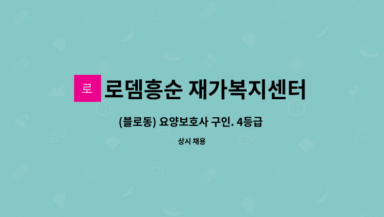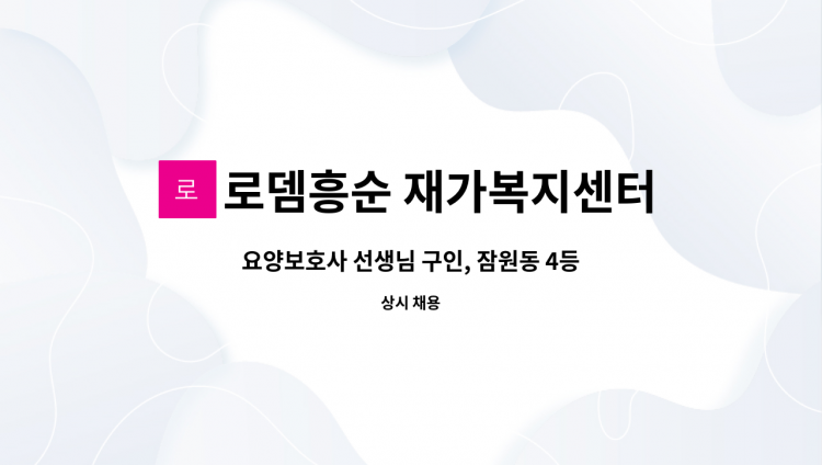 4등급 여자어르신 케어해주실 요양보호사 선생님을 모집합니다. 근무지 : 강서구 화곡3동 푸르지오 부근 근무시간 : 월~금 13시~16시 또는 12시~15시 기저귀 착용 전반적인 도움 필요 가사활동 도움 점심, 저녁 식사준비, 주변 환경 청결유지 주1회 목욕도움 말벗 *강아지 키우십니다. 010-****-**** (*개인정보가 자동 블라인드 됩니다.) 성명, 나이, 사시는 곳을 문자로 보내주시면 연락드리겠습니다^^