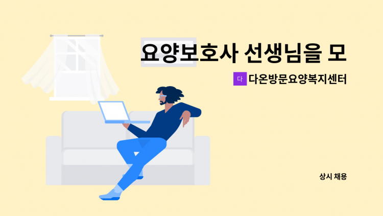 ♡다온방문요양복지센터♡에서 방문요양서비스를 제공하실 재가 요양보호사분을 모십니다. 4등급 어르신(여성/80대 거동가능) ***지역 : 경기도 용인시 기흥구 연원마을 성원아파트 ***시간 : 오전 8시~11시 (조정가능) ***시급 : 포괄시급 12,100원 [요양지원 > 일상생활수행지원] 보행 돕기,침상,대·소변 돕기,식사 지원하기,옷 갈아입히기,의사소통 돕기 등 [일상생활기능지원 > 신체활동지원] 식사보조하기,이동보조하기,대소변보조하기,목욕보조하기,용모관리하기 [일상생활기능지원 > 인지정서지원] 학습지원하기,인지력향상지원하기,심리지지하기,여가지원하기 [일상생활기능지원 > 가사활동지원] 식사준비하기,청소지원하기,의복관리하기 [일상생활기능지원 > 일상생활 서비스 기록관리] 업무일지 작성하기,활동일지 작성하기