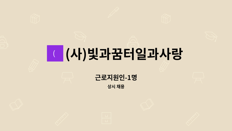 동행에서 근무하실 근로지원인을 모집합니다. 1. 근로지원인 이란? - 장애인 근로자분들의 업무가 원할하게 이루어질 수 있도록 장애인 이용자분의 부수적인 업무를 도와 드리는 업무 입니다. 2. 근로시간 - 근무 09:00~13:30(휴게시간 30분 포함)4시간 3. 업무 - 지적 장애를 가지신 분의 업무(임가공 및 DM발송업무) 보조 입니다. 4. 근로조건 - 시간당 9,620원 - 한 주 만근으로 일하시면 일요일 주휴수당 발생 합니다. - 한 달 만근 시 유급 월차 제공 합니다. - 4대보험 가입 5. 지원 - 전화: 033-****-**** (*개인정보가 자동 블라인드 됩니다.) - 핸드폰: 010-****-**** (*개인정보가 자동 블라인드 됩니다.) - 이메일: [email protected] 6. 궁금하신 내용은 언제든 전화문의 부탁드립니다. 감사합니다.
