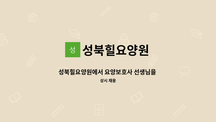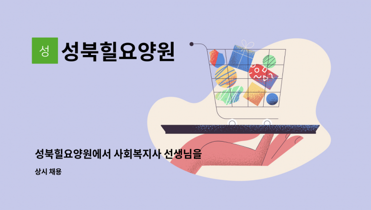 성북힐요양원에서 요양보호사 선생님을 모집합니다. 면접 시 일정 조율합니다. 지원 전, 요양원 위치를 꼭 확인해주세요. 한성대입구역 6번출구에서 1111, 2112 승차 후 회차지점 <서울 다원학교, 한용운 활동터>에서 하차 후 5분 거리에 있습니다. 요양보호사 자격증은 필수 입니다.