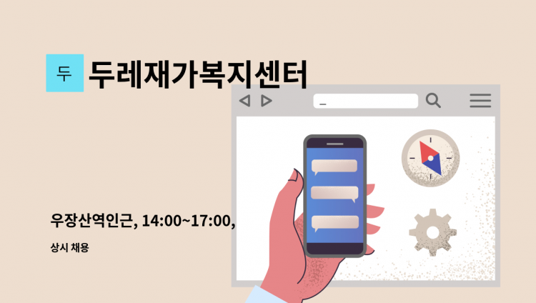 - 대 상 자: 80세 3등급 할아버님 - 업 무: 어르신케어, 청소 등 일상생활 지원 - 근무시간: 09:00 ~ 12:00 / 주 5일(총 15시간) - 급 여: 시급 12,200원