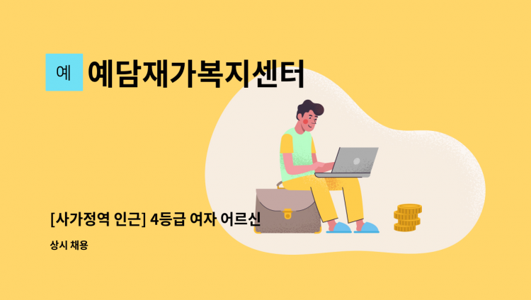 4등급 여자 어르신 직무: 생활지원, 말벗, 색칠하기 하시면서 가족처럼 함께 일해주실 분 시간: 14:00~17:00 임금: 시급 12,100원
