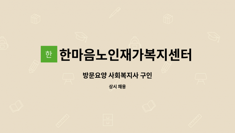 화정동 별빛마을7단지 2등급 여자어르신 재가요양 업무 / 주5일 근무 (11:00~15:00, 시간조정 가능) / 시급12,400원 / 채용담당자와 통화 후 면접 ※ 실제 서비스 제공기간에 따라 임금을 계산하여 지급하는 형태로 채용 시 근로자마다 주 소정근로시간이나 임금, 근무(예정)지 등에 차이가 있을 수 있음