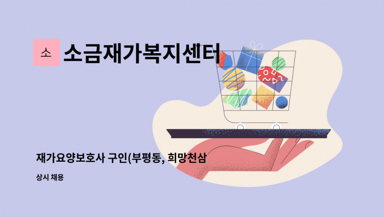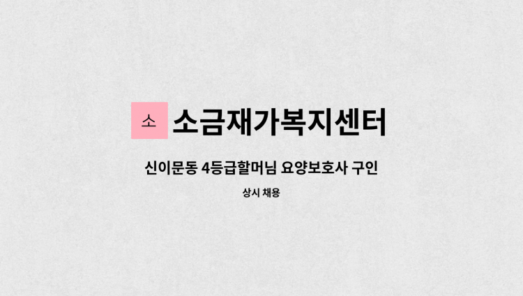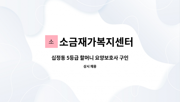 - 4등급 할머니(십정시장 인근) - 09:00~12:00, 주5일 - 반찬만들기, 신체활동 지원, 일상생활도움 등 - 시급12,500원
