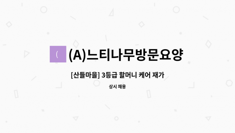 [식사동]4등급 여성어르신케어 요양보호사 모집 / 주 5일 오전 / 시급 12,100원 / 아들내외와 거주하나 출근으로 근무시간중엔 혼자계심 / 센터장 유선 통화 /실제 서비스제공기간에 따라 임금을 계산하여 지급하는 형태로 채용시 근로자마다 주소정근로시간이나 임금, 근무(예정)지에 등에 따라 차이가 있을수 있음