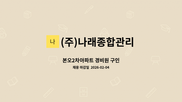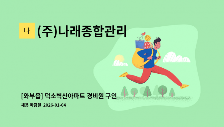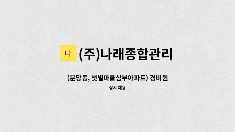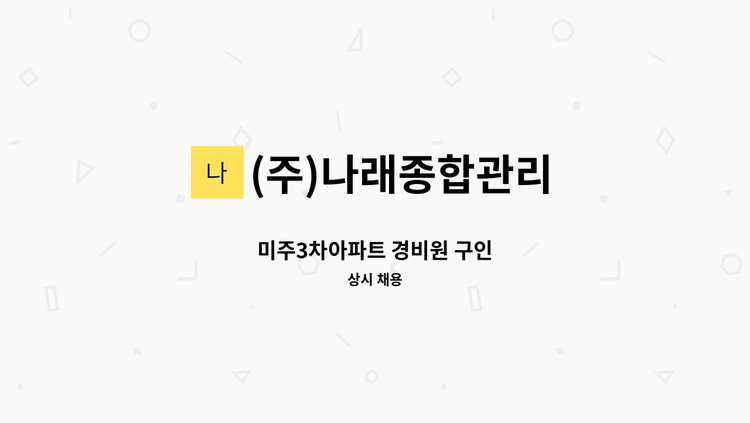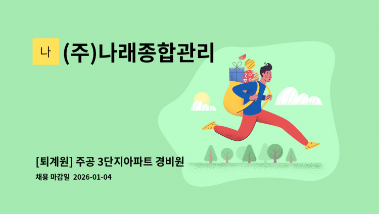 아파트 경비/경비신임교육이수자 복지카드 소지자 우대 급여 2,560,324(휴게 주-4.5, 야- 4시간)