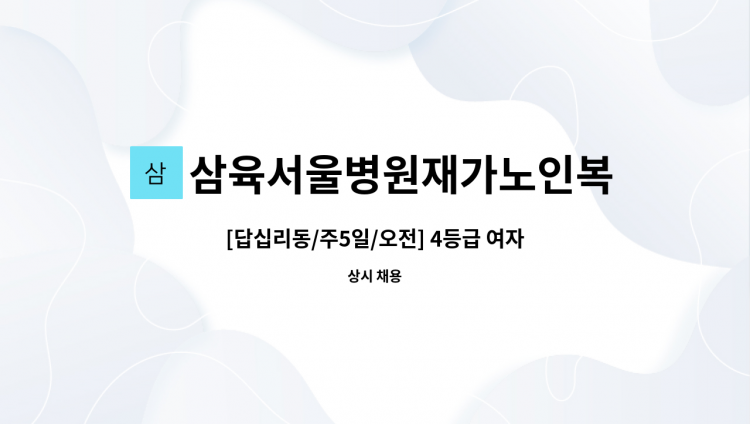 * 4등급 여자어르신 돌봄 -식사 챙겨 드리기, 화장실 이동시 부축, 어르신방 정리정돈, 목욕 지원 등 -(월~금) 13:00~16:00 -시급 12,500원 -동대문구 사가정로 65 전농동 크래시티