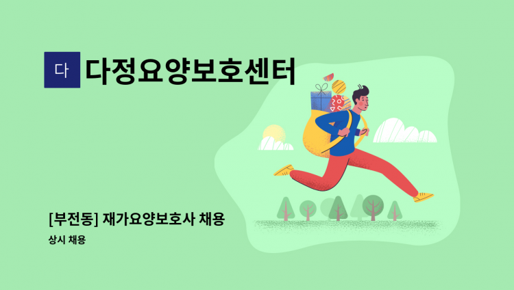 [ 안락동 동래화목타운 아파트 ] 재가요양보호사 선생님 모집합니다. - 4등급 남자어르신(80대 중반) / 배우자 거주 - 13:00~16:00 / 주5일 - 시급:12,100원 - 실내운동도움, 목욕도움, 청소, 병원동행 등 - 채용담당자: 051-****-**** (*개인정보가 자동 블라인드 됩니다.) / 010-****-**** (*개인정보가 자동 블라인드 됩니다.) [ 다정요양보호센터 ]