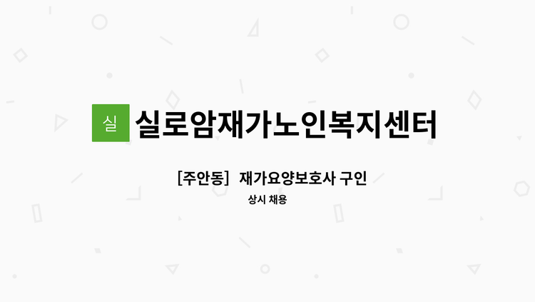 *2등급 여자어르신 (일생생활지원, 가사지원) *근무예정지: 서구 가좌동 *근무시간: 오후근무(협의가능) / 주5일근무 *시급:12,100원 (중증가산 3,000원 추가지급)