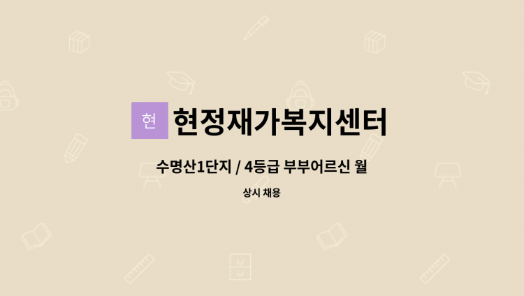 ㅇ근무지: 등촌주공 4단지 아파트 ㅇ모집직종: 요양보호사 1명 ㅇ업무내용: 5등급 83세 여자어르신(독거/인지지원활동, 가사, 일상생활 지원/ 산책, 병원동행) ㅇ근무시간: 07:50-10:50(월-금/주5일) ㅇ시급: 12,500원 ㅇ필수: 요양보호사 자격증, 치매교육 이수자