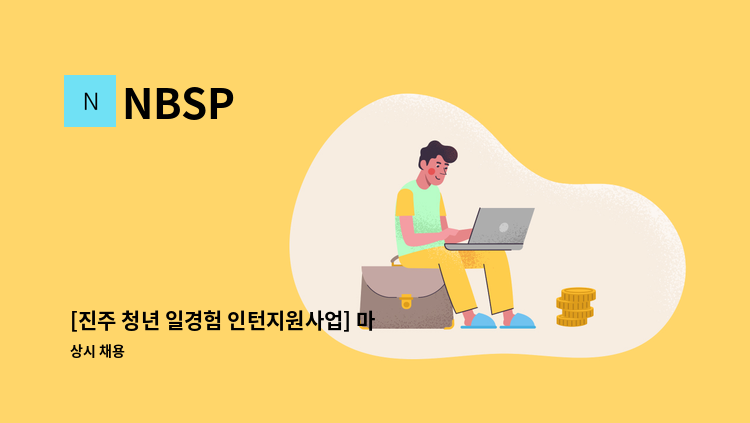 NBSP 온라인마케팅 / 유튜브, SNS 관리, 동영상 편집 등 함께 성장할 인재 구합니다. 포토샵 일러스트 가능자는 우대하지만, 일단 없어도 도전하십시오! 초보자 가능합니다. 도전하십시오. 우리는 도전을 함께 하는 회사입니다. ------------------------------------------------------------------------------- 회사 nbsp입니다. 같이 먹고 살것 함께 해결하면서 성장했으면 합니다. 관련 학과 졸업년도 학생이나, 졸업한 분 지원하시면 좋습니다. NBSP는 2016년에 설립된 회사로 중소기업입니다. 경남 진주시 망경남길44번길 22 (망경동, 진주지식산업센터)에 위치하고 있으며, 회사별 자료 정비 및 컨텐츠 업로드 정비 및 스케줄사업을 하고 있습니다. 모집분야 및 자격요건 온라인 홍보 영역 / 웹 마케팅 / 유튜브 관리 SNS 담당업무 ㆍ유튜브용 영상제작 ㆍ각 회사별 SNS 운영 관리 자격요건 ㆍ학력 : 학력무관 ㆍ경력 : 경력무관 우대사항 ㆍ문화예술행사 관련 대학교 졸업반 (2학기 중) 또는 졸업생 우대 우선 모집합니다. 웹페이지, 홈페이지, 유튜브 관리, 행사기반 지원사업 진행 담당업무 ㆍ웹페이지, 홈페이지, 유튜브, 블로그 관리 ㆍ실무 배우면서 회사 키워 가실분