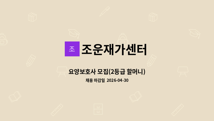 [은행동] 4등급 할머니 케어할 요양보호사 구인 - 85세, 거동 약간 불편, 노부부거주 - 일상생활지원 - 주 5일 / 15:00~18:00(앞뒤로 30분 정도 시간조정가능) - 시급 : 12,100원 [실제 서비스 제공기간에 따라 임금을 계산하여 지급하는 형태로, 채용 시 근로자마다 주 소정근로시간이나 임금, 근무(예정)지 등에 차이가 있을 수 있음]