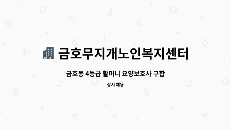 금호무지개노인복지센터에서 함께 일하실 요양보호사님을 모집합니다.