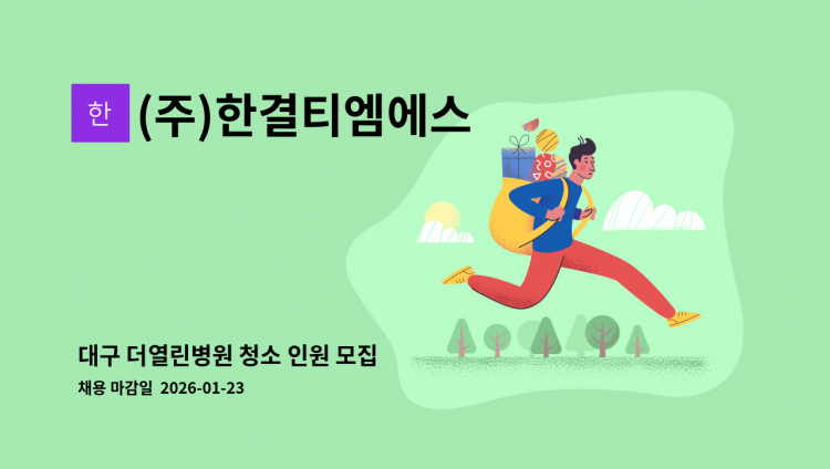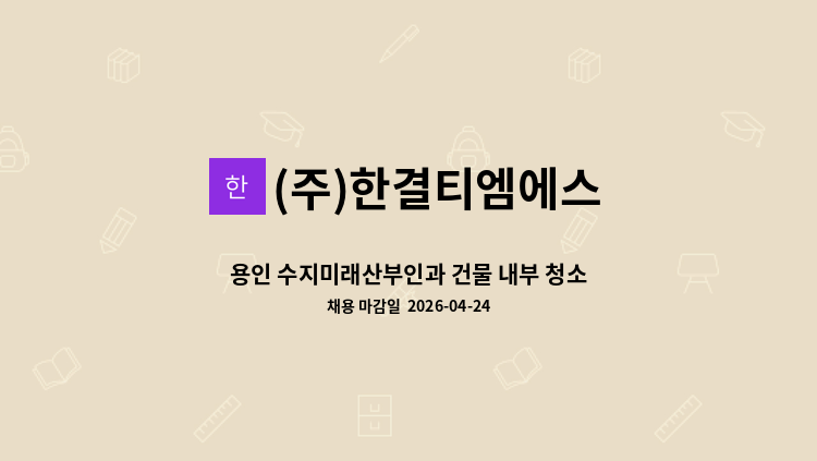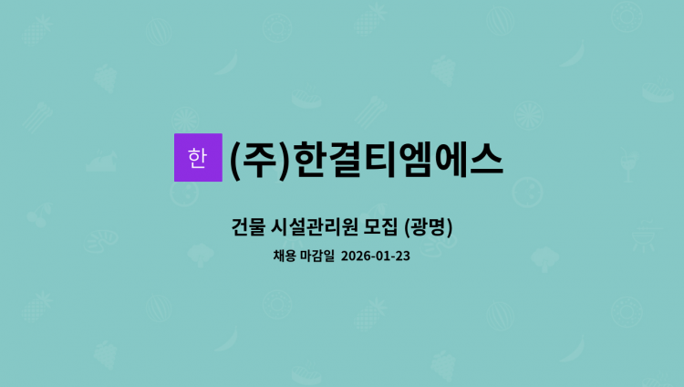 담당업무 ㆍ건물 시설물 점검 및 관리,정비 자격요건 ㆍ학력 : 학력무관 ㆍ경력 : 경력1년↑ ㆍ계속 근무 가능자 우대사항 ㆍ경력자 우대 (3~4년) ㆍ계속근무 가능자 ㆍ시설관련 선임 자격증 소지자 우대