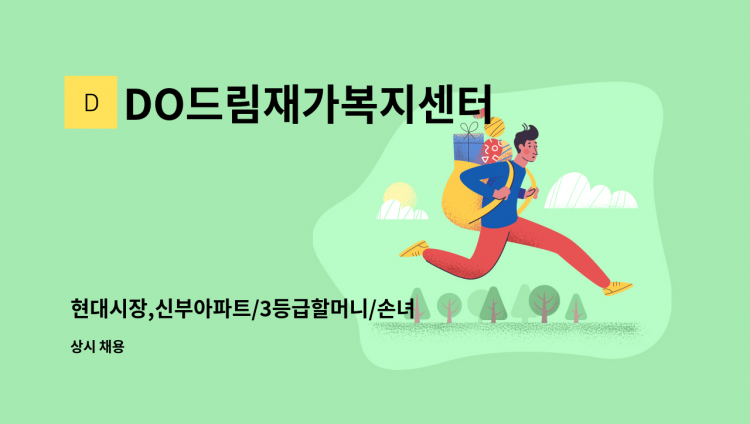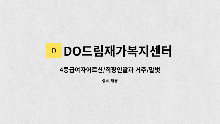 *4등급 여자어르신 / 주택 3층 거주/직장인 딸 내외와 거주 *오후(1시~4시) 요양(주5일) *시급 12,500원 *점심챙겨드리기(따님이 해놓은 것), 주2회 목욕 및 병원동행(*휠체어이동*), 말벗