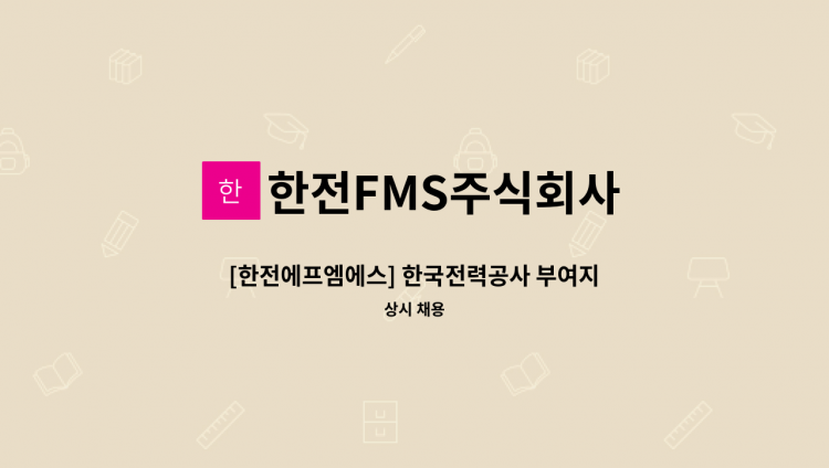 -담당업무 ㆍ한전 구리지사 외곽 청소 및 중량물 운반 등 미화 중노무 업무 (근무지 : 경기도 구리시 안골로 31 한전구리지사 한전FMS㈜) -자격요건 ㆍ학력 : 학력무관 ㆍ경력 : 신입 -우대사항 ㆍ해당업무 유경험자 -급여 ㆍ1,230,000원(세전) ※명절 상여금 등 별도 지급 -참고사항 ㆍ채용시 ~ 2023년 12월 31일