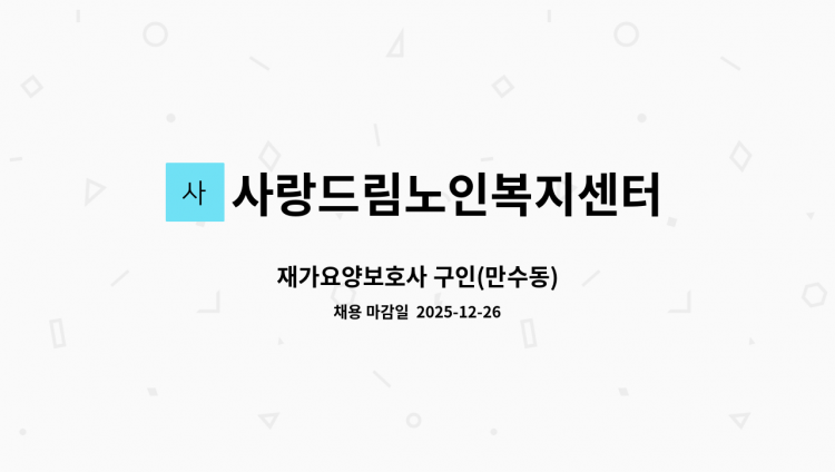 * 대상자: 2등급여자어르신 * 근무지: 경기 시흥시 하중로 221번길 16 * 시 간: 12:30~15;30(주5일) * 시 급 :12,100원 *거동이 불편한 어르신 신체,가사활동 지원