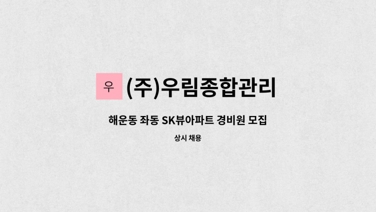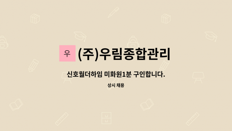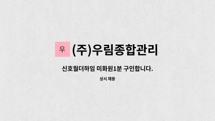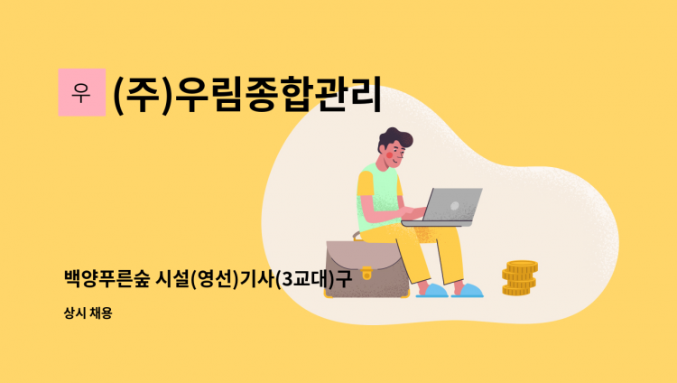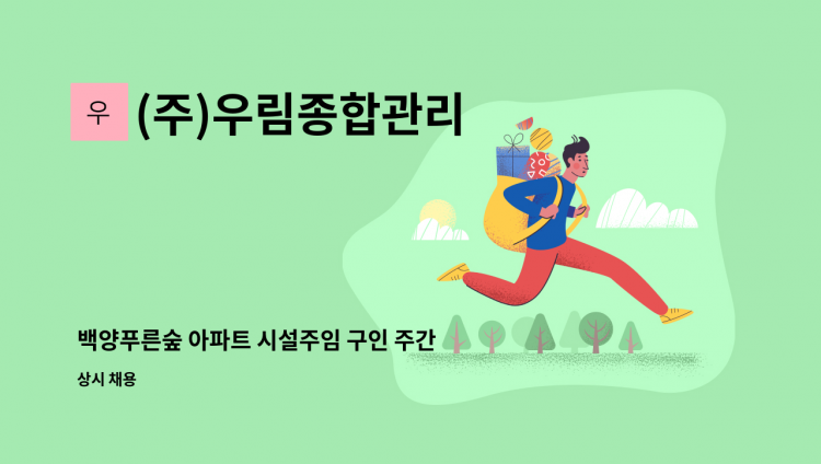 아파트 단지 내 시설관리 전반작업 및 세대 민원처리 등 전반적인 공동주택 관리 궁금한 사항은 면접시 문의하시기 바랍니다. 친절히 답변해드립니다.^^ *검침수당 별도 *소방보조선임가능자