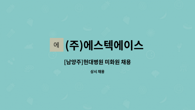 - 서울 강동구 아리수50길 50 고덕래미안힐스테이트 - 주6일근무 오전 09:00~16:00(휴게 1시간), 오전 08:00~12:00 (토) - 월급 1,673,380원